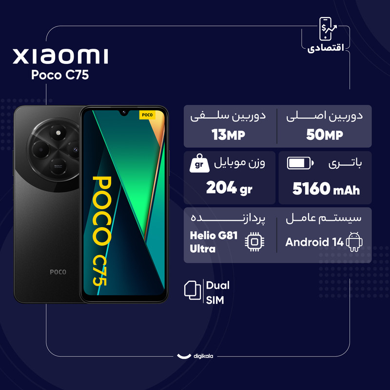 گوشی موبایل شیائومی مدل Poco C75 دو سیم کارت ظرفیت 256 گیگابایت و رم 8 گیگابایت